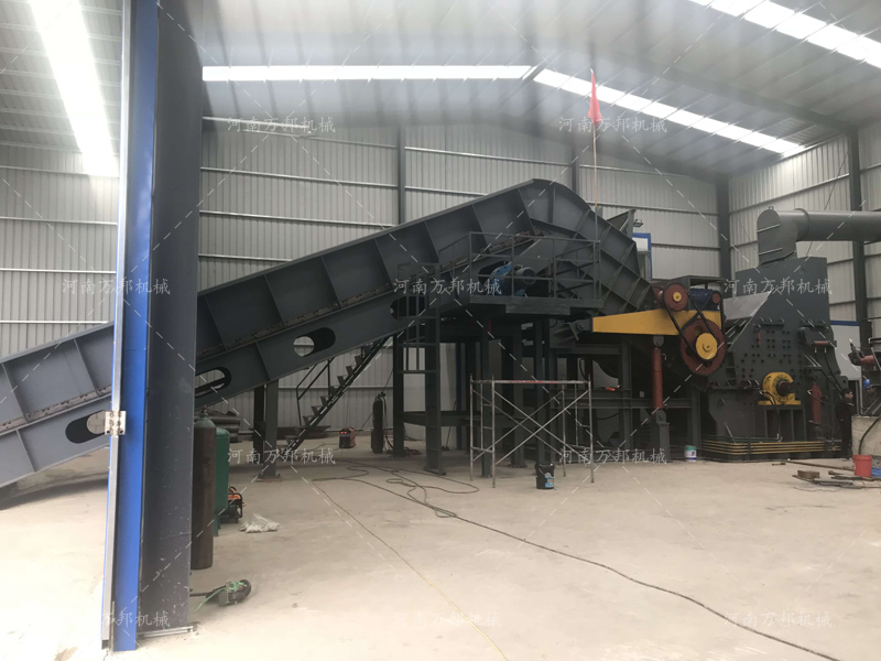 在結(jié)構(gòu)原理上萬(wàn)邦自行車破碎機(jī)采用撞擊式破碎原理,在廢舊自行車投入設(shè)備后高速旋轉(zhuǎn)的錘頭對(duì)物料進(jìn)行猛烈擊打、撕扯和擠壓。物料在破碎腔內(nèi)反復(fù)受到撞擊,直至碎裂成預(yù)定規(guī)格的團(tuán)球狀顆粒。隨后,碎片通過(guò)底部篩網(wǎng)濾出,未達(dá)標(biāo)的物料則留在腔內(nèi)繼續(xù)破碎。此過(guò)程通常配合磁選裝置,高效分離金屬與非金屬雜質(zhì),最終得到純凈度高、密度大的優(yōu)質(zhì)破碎鋼,極大方便了后續(xù)的運(yùn)輸與冶金再生。該機(jī)在廢舊自行車、摩托車破碎過(guò)程中可有效增加物料比重提高廢鋼冶金品質(zhì)。