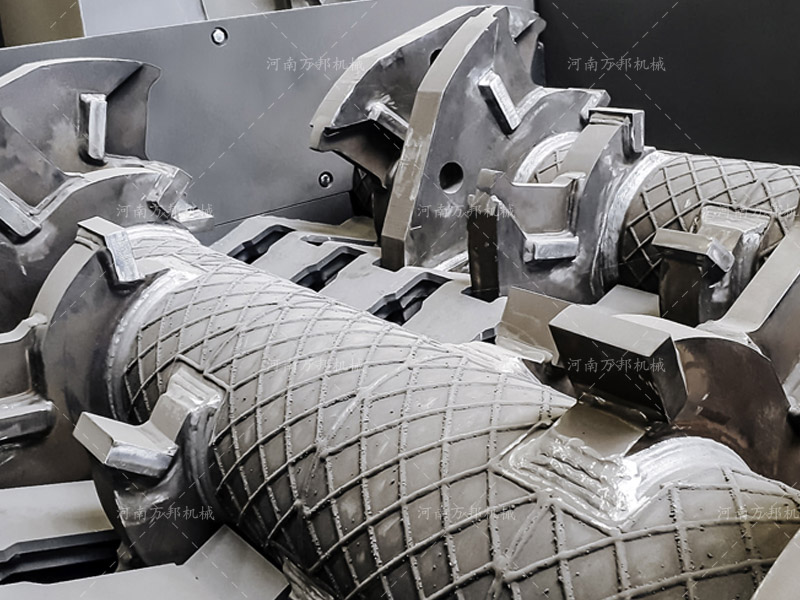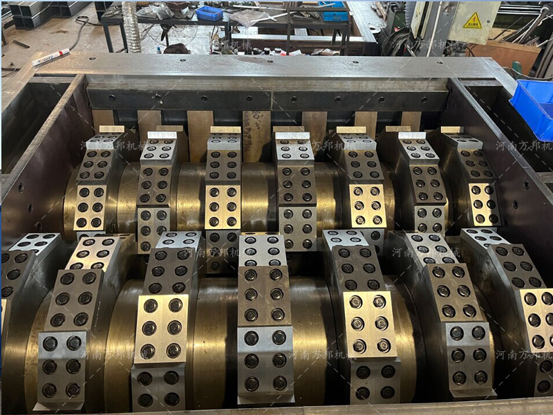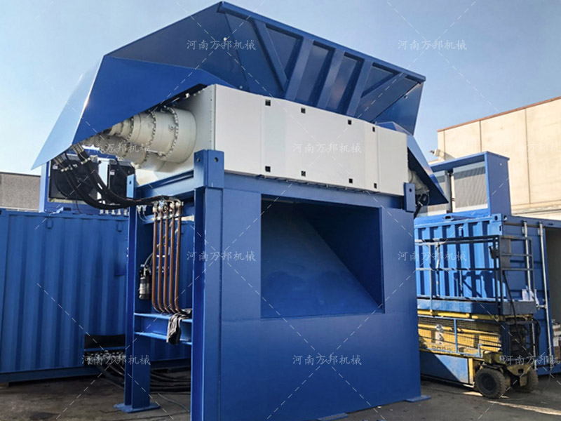 河南萬邦機械液壓金屬撕碎機在設備生產(chǎn)設計中通常采用液壓馬達作為設備大扭矩傳載的主要工具,在機構原理上通過電機驅動液壓泵站提供液壓系統(tǒng)壓力,在液壓系統(tǒng)壓力的作用下驅動設備液壓馬達實現(xiàn)主軸旋轉從而實現(xiàn)物料的破碎處理,相對于傳統(tǒng)電驅撕碎機設備運行更加平穩(wěn),相對傳動扭矩更大,在驅動控制系統(tǒng)上可適時調(diào)節(jié)主軸轉速,相對電信號延遲控制精度無法保證的情況萬邦液壓撕碎機具有更大優(yōu)勢。 河南萬邦機械金屬撕碎機組成: