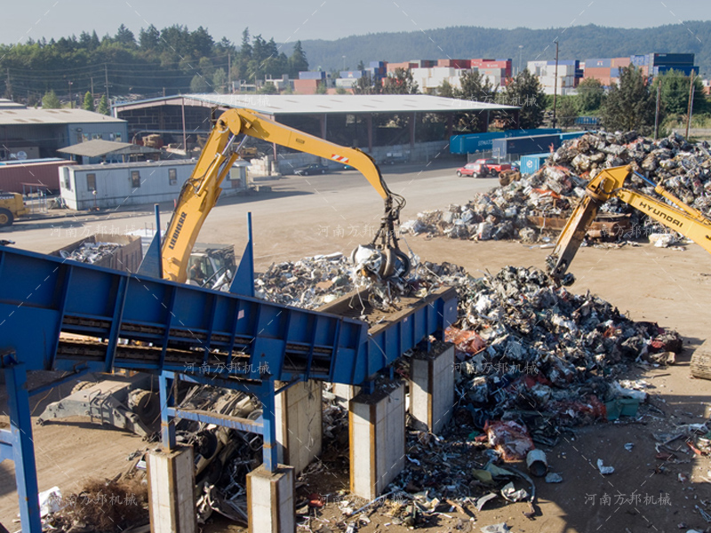 彩鋼瓦破碎機(jī)是河南萬(wàn)邦機(jī)械金屬粉碎機(jī)系列中用于實(shí)現(xiàn)輕薄金屬破碎的一種設(shè)備,在設(shè)備選型上可考慮彩鋼瓦粉碎機(jī)配套彩鋼瓦撕碎機(jī)進(jìn)行一體化生產(chǎn)線搭建從而實(shí)現(xiàn)自動(dòng)化彩瓦破碎再生加工。經(jīng)過(guò)該機(jī)加工后的廢舊彩鋼瓦可有效降低金屬表層油漆覆蓋面,從而穩(wěn)定廢舊金屬冶金成分降低鋼鐵硫、磷含量,再次使用該機(jī)破碎后的廢舊彩鋼瓦在轉(zhuǎn)運(yùn)具有密度高、占方小運(yùn)輸成本低的優(yōu)勢(shì)。在設(shè)備應(yīng)用上該機(jī)被廣泛應(yīng)用于各大廢品回收站,用來(lái)對(duì)回收后的彩鋼瓦、薄鐵皮、廢鐵屑、易拉罐、油漆桶等進(jìn)行破碎加工。在設(shè)備選型上河南萬(wàn)邦機(jī)械可提供800型-3000型彩鋼瓦破碎設(shè)備可供用戶選擇,在處理量上可實(shí)現(xiàn)800-28000kg/h。
